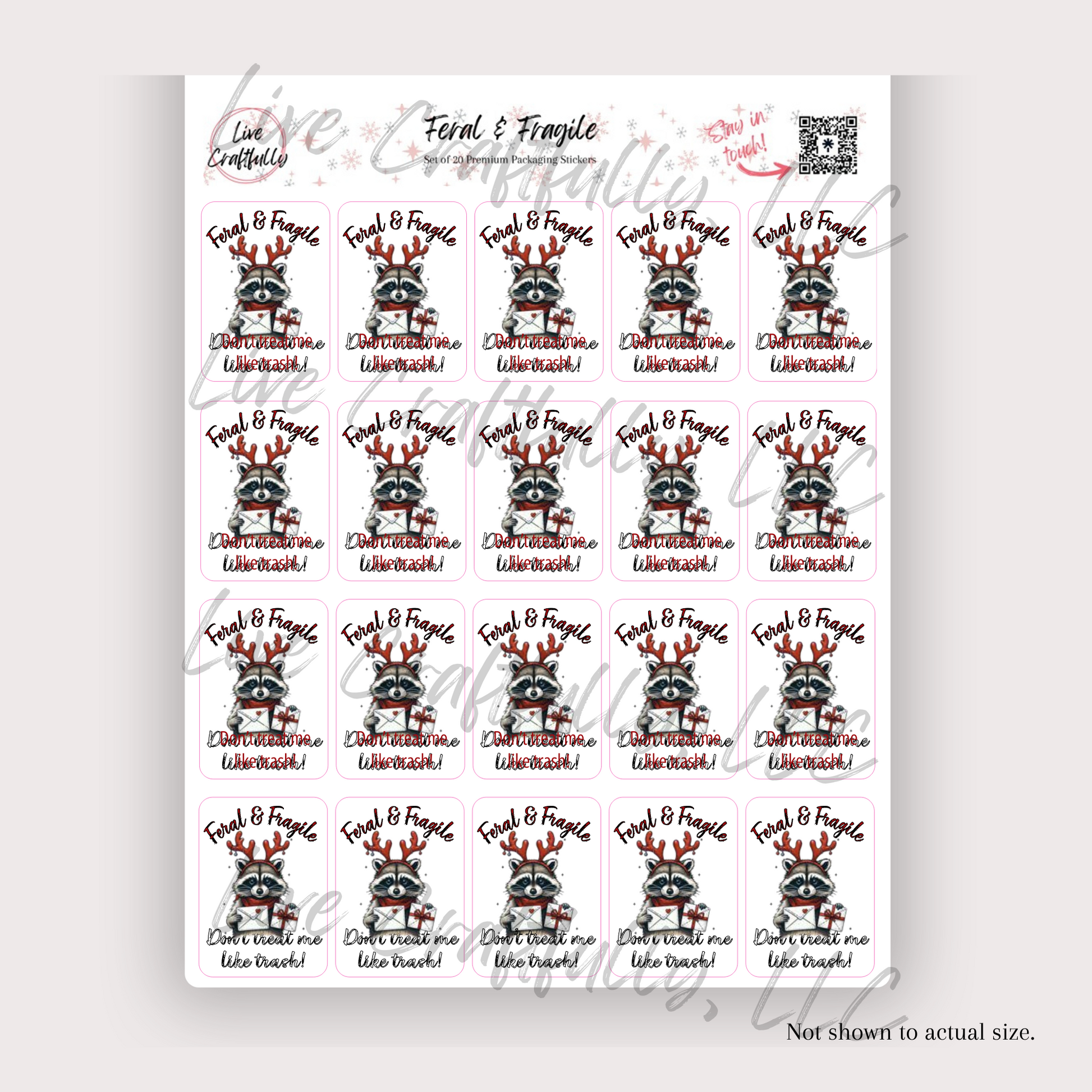 Give your mail carrier and customers a reason to smile this holiday season with this fun, snarky take on a fragile sticker! Stickers will come by the sheet and will include 20 stickers on each sheet. Each sticker measures approximately 2.2" x 1.5." These are printed on premium high-quality vinyl with eco-solvent ink.